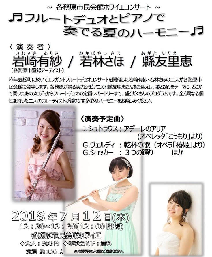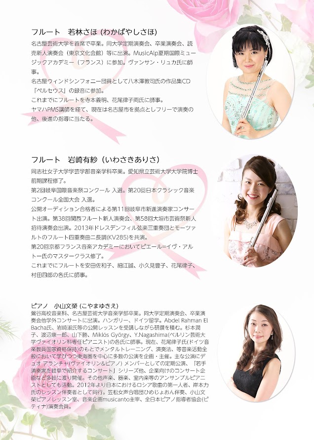 出演:若林さほ、岩崎有紗(フルート)、縣友里恵 (ピアノ)