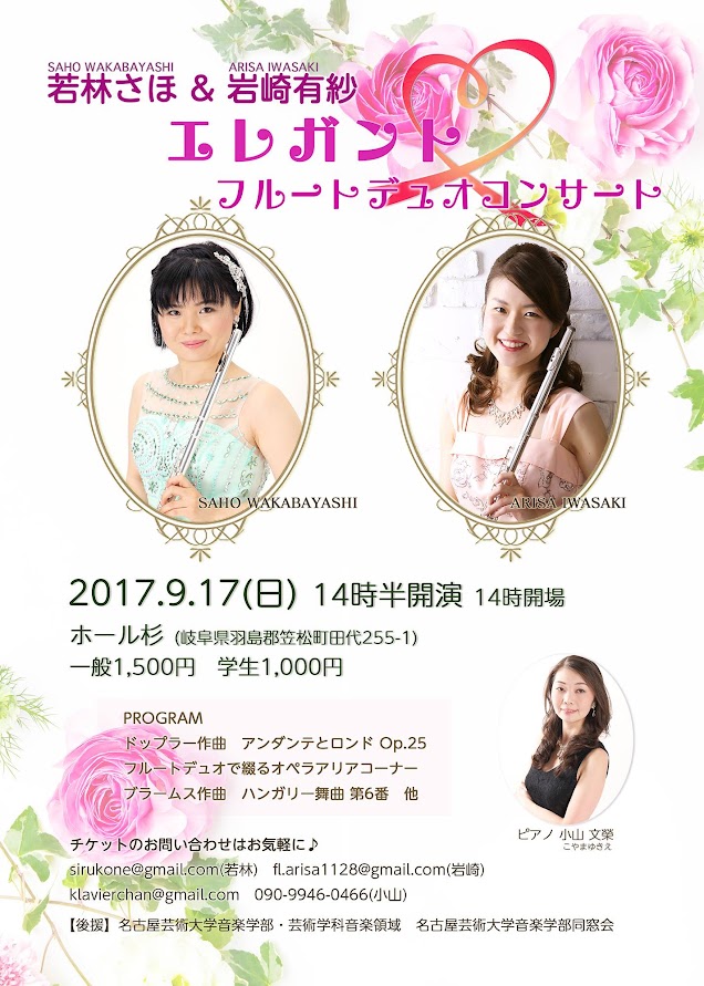 出演:岩崎有紗(フルート)、佐々木杏子(ピアノ)