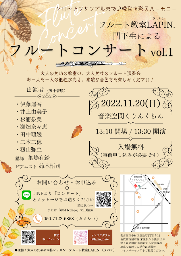 出演:亀嶋有紗、フルート教室LAPIN.門下生有志(フルート)、鈴木悟司(ピアノ)