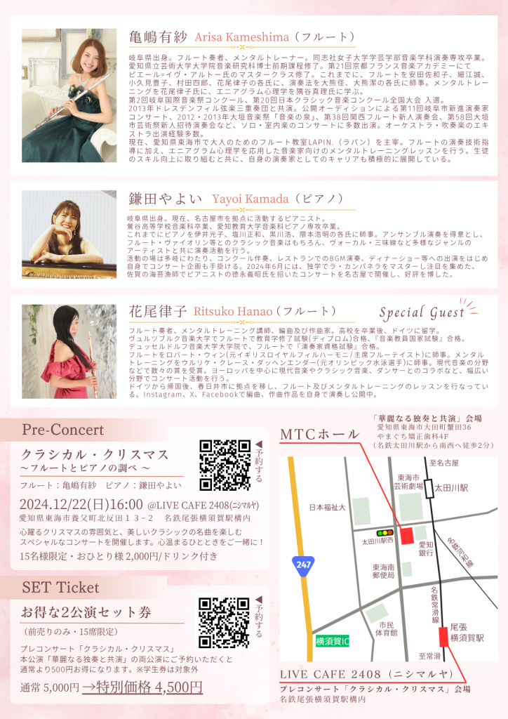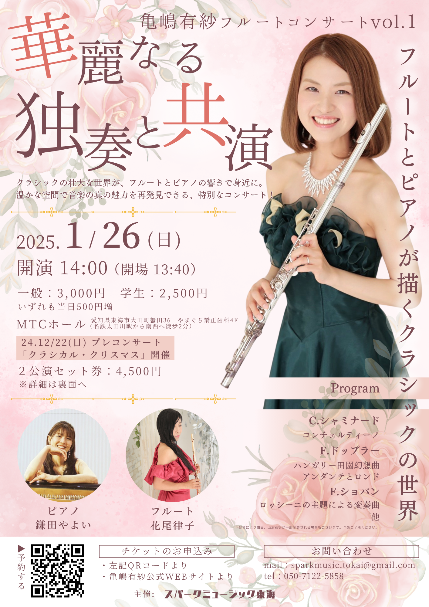 亀嶋有紗フルートコンサート vol.1 華麗なる独奏と共演~フルートとピアノが描くクラシックの世界~