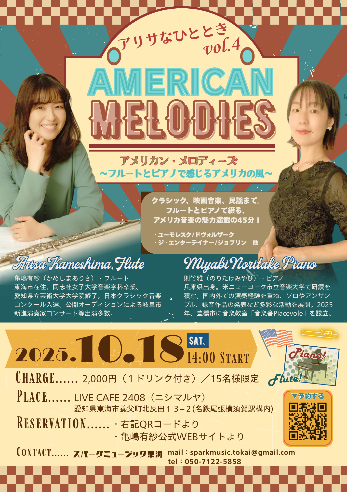 出演:則竹雅(ピアノ)、亀嶋有紗(フルート)